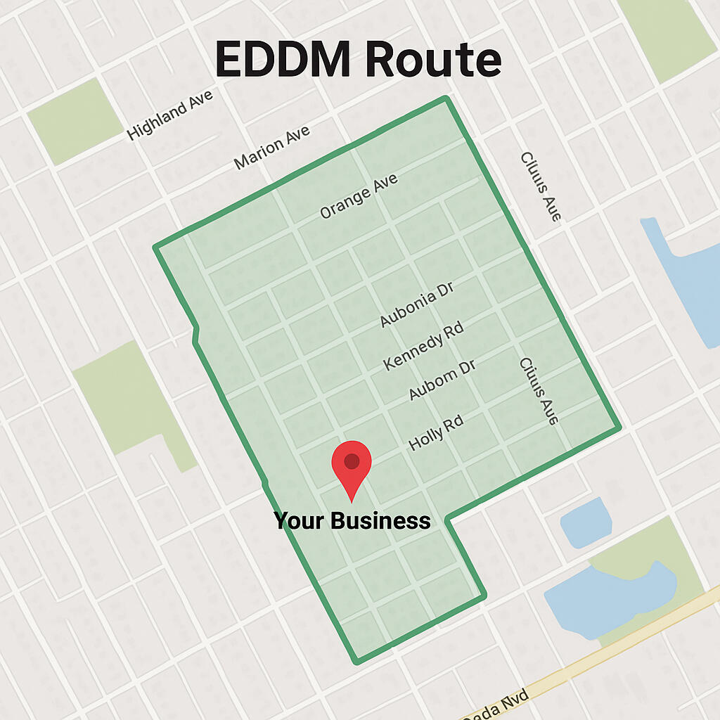 EDDM (Every Door Direct Mail) is a USPS program that lets you target neighborhoods by ZIP code — no mailing list needed.